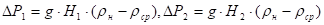6. Определяют перепад давлений для приточных и вытяжных проемов