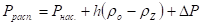 Располагаемое давление, которое обеспечивает циркуляцию воды в насосной системе водяного отопления с верхней разводкой определяется по формуле: