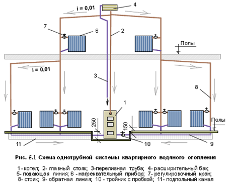 III. По направлению объединения отопительных приборов (как однотрубные так и двухтрубные).