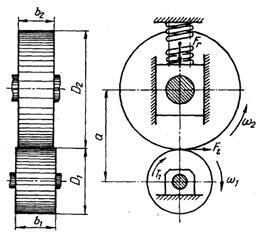 В рассматриваемых передачах всегда имеет место проскальзывания дисков, поэтому величина передаточного числа непостоянна. Она подсчитывается по формуле
