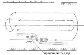 Все виды работ грейдеры выполняют при движении по кольцевой продольной схеме вдоль большой оси выемки или насыпи, причем рабочими обычно являются проходы в прямом и обратном направлении.