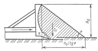 где НО и bО – высота и ширина отвала бульдозера, м; φ – угол естественного откоса насыпного грунта (φ = 30…450); β – угол захвата, град.; Кн – коэффициент наполнения (Кн = 0,6…0,8).