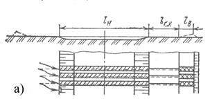 - гребенчатой при разработке сухих суглинистых и глинистых грунтов на горизонтальных участках (рис. 1в);