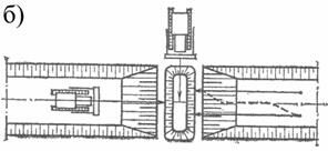 1. Эллиптическая схема (рис. 2 а) применяется в большинстве случаев при планировочных работах и при возведении насыпей или разработке выемок линейно-протяженных сооружений при высоте или глубине до 2 м, когда не требуется устройства выездов или съездов.