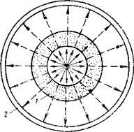 Показателем прочности керамзита является сопротивление сжатию порции керамзита, насыпанной в стальной цилиндр, при сдавливании ее поршнем на глубину 20 мм. По размерам зерен различают три фракции: 5…10, 10…20 и 20…40 мм. Керамзит с крупностью зерен менее 5 мм относится к керамзитовому песку. Марка по морозостойкости керамзита должна быть не ниже F15 с потерей массы не более 8%. Потеря массы после 4-часового кипячения не должна превышать 5%, а отпускная влажность не должна составлять более 20 %. Большое влияние на качество керамзита как заполнителя бетона оказывает коэффициент формы зерен, т. е. отношение максимального размера зерна к минимальному. По ГОСТ она должна быть не более 1,5. Содержание в гравии расколотых зерен не должно превышать по массе 15%. Методы испытаний ке­рамзитового гравия регламентированы ГОСТ 9758. Большое значение имеет однородность свойств керамзита. От­дельные чрезмерно легкие и наименее прочные зерна в партии керамзита, не уменьшая существенно его плотности, могут явиться в бетоне начальными очагами разрушения. Тяжелые зерна, не увеличивая общую прочность бетона, обра­зуют «мостики холода», ухудшая его теплозащитные свойства. Качество готовой продукции на предприятии оценивают по коэффициенту однородности керамзита. Основы теории вспучивания глин изучают закономерности процесса вспучивания глиняных гранул. Они состоят в следующем. Во время нагревания глиняной гранулы (рис. 8.1) при достижении определенной температуры глиняная оболочка поры начнет размягчаться, спекаться, затем она уплотняется и становится газонепроницаемой, переходит в пиропластическое состояниие, т. е. становится способной к пластическим деформациям без разрыва сплошности. Если в этот момент внутри шарика начнут выделяться газы, то, не имея выхода через обо­лочку, они будут создавать во внутренней полости шарика избыточное давление, под действием которого размягченная оболочка будет расширяться. Так происходит вспучивание элементарной ячейки глины, которое приводит к вспучиванию гранулы.  Следует учитывать и неравномерность прогрева: на поверхности нагрев происходит быстрее, чем в центре. Поэтому поверхность гранулы еще до того, как вся ее масса приобретет пиропластическое состояние, покрывается плотной спекшейся газонепроницаемой оболочкой, предотвращающей утечку газов из гранулы. Условием, обеспечивающим вспучивание глин при нагревании, является совмещение во времени пиропластического состояния глины с интенсивным газовыделением внутри гранул. Но каждый из этих факторов в отдельности не обеспечивает процесса вспучивания, необходимо, чтобы они действовали одновременно. Если же в этом температурном интервале интенсивность газовыделения опережает
