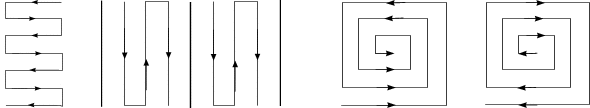 При забивке свая внедряется в грунт, раздвигая его частицы, в результате чего грунт вокруг сваи уплотняется, что должно быть учтено при назначении схем забивки. Распространены схемы забивки: рядовая, секционная, спиральная в направлении от краев участка к его середине и от середины участка к его краям (рисунок 2).