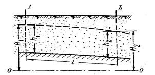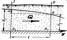 Рис. 13. Схема неравномерного плавноизменяющегося движения грунтовых вод