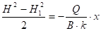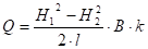 Нетрудно получить также выражение для величины расхода фильтрационного потока при известных величинах напора в двух сечениях потока: