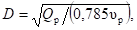 Расчет диаметров водоводов производится по величинам допускаемых скоростей в условиях нормального режима работы водозабора и выполняется по формуле