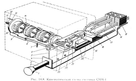 Дальнейшая работа счетчика возможна после снятия кожуха 3, выведения из зацепления стопора 9 и установки на счетчике показания 0.