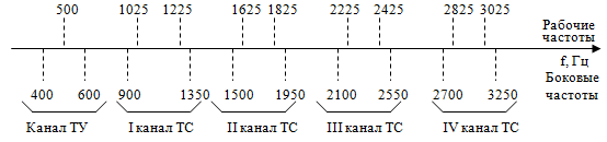 Сигналы ТС поступают на центральный пост ДЦ по четырем частотным каналам, работающим по одной физической цепи. Структурная схема устройств этих каналов одинакова, отличается лишь настройкой контуров усилителя и демодулятора.