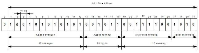 Сигнал ТУ содержит 30 тактов по 16 мс. Последний 31-й такт не имеет границы в виде завершающего изменения фазы.