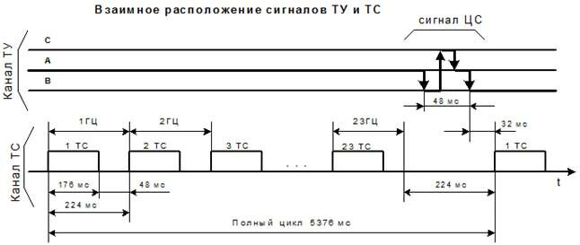 Канал телеуправления (ТУ) появляется спорадически, по мере необходимости. В канале телесигнализации применяется циклический (повторяющийся через определенные промежутки времени) способ передачи сигналов ТС. Начало каждого нового цикла передачи сигналов ТС с линейных пунктов определяется специальным сигналом цикловой синхронизации (ЦС), передаваемым с ЦП по каналу ТУ.