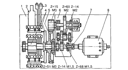 Кинематическая схема электропривода типа СП-3 показана на рис.1. Конструкция электропривода типа СП-3 (рис.2) включает в себя такие основные части: / — корпус; 2 — рабочий шибер; 3 —контрольные линейки; 4 — блок главного вала с автопереключателем; 5 — зубчатое колесо с упором; 6 — редуктор с фрикционным сцеплением; 7 — соединительную муфту; 8 — электродвигатель; 9 — обогревательный элемент.