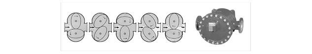 Фирма “Bopp & Reuther” поставляет объемные счетчики с овальными шестернями. Измерительный элемент счетчика состоит из двух прецизионных овальных шестерен, расположенных в корпусе. При прохождении жидкости шестерни вращаются и при этом одному обороту их соответствует точно одинаковый объем протекающей жидкости.