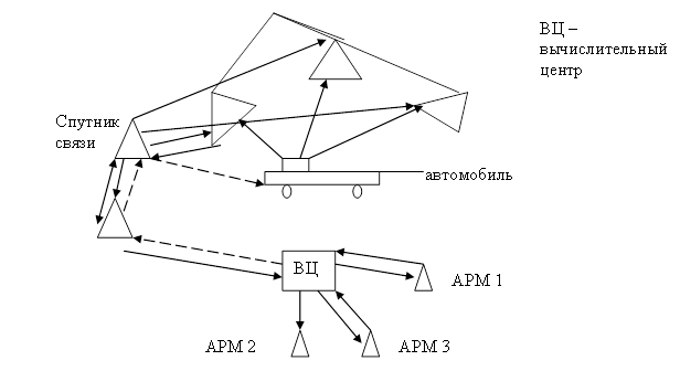 В бортовой компьютер через АРМ вводятся данные об автомобиле, его маршруте, грузе и прочие, которые передаются по компьютеру по всем контрольным постам.