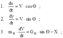 пренебрегаем кривизной Земли и рассматриваем движение в прямоугольных координатах ;