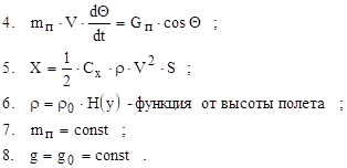 При расчете пассивного участка траектории мы должны получить дальность полета , время , коэффициенты перегрузок (продольные) .
