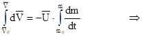 Будем рассматривать движение ракеты в безвоздушном пространстве и вне поля тяготения Земли , т.е. ракета движется под действием силы тяги . Запишем уравнение Мещерского для нашего случая :
