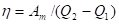Адиабатное сжатие d - a завершает цикл. В результате температура и давление идеального газа повышаются до первоначального состояния (точка а на рис. 13). Цикл завершен. Каков же результат данного цикла? На этапах расширения (кривые a – b, b - c) газ производил работу, на этапах сжатия (c – d, d - a) затрачивалась энергия на работу с газом. Таким образом, заштрихованная площадь диаграммы abcd есть не что иное, как полезная работа Ам цикла Карно. Отношение полезной работы Ам к количеству теплоты, поглощенной в процессе изотермического расширения (Q2 – Q1), называется коэффициентом полезного действия цикла, т.е.