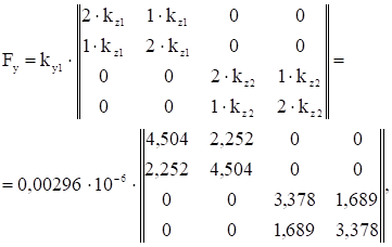 Матрицы податливости элементов системы Fy, Fx и FN могут быть получены из матрицы Fz путем замены коэффициентов kzi при блоках на коэффициенты соответственно