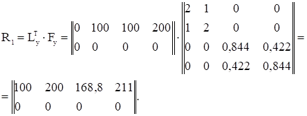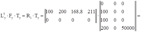 Реализуем матричное выражение LTy·Fy·Ty. Для этого перемножим транспонированную матрицу LTy на матрицу податливости Fy, получив промежуточную матрицу R1. Транспонированная матрица LTy получается путем поворота столбцов матрицы Ly против часовой стрелки, при этом столбцы превращаются в строки транспонированной матрицы LTy.