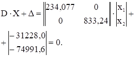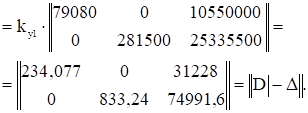 В полученной матрице два первых столбца образуют матрицу D, а третий столбец – присоединенный с обратным знаком вектор-столбец Δ грузовых коэффициентов.