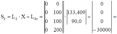Если грузовые эпюры представить в виде аналогичных матриц LPy , LPz , LPx , LPn размера (m X а) и объединить с соответствующими матрицами Ly, Lz, Lx и LN то получим расширенные матрицы Ту, Тz, Тx и TN размера [т X (п + а)]. Например, матрица Tz состоит из матрицы Lz и приписанной с обратным знаком матрицы LPz, т. е.