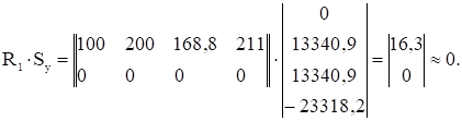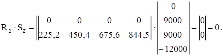 Ошибка определяется следующим образом: при перемножении строки матриц R1 или R2 на вектор-столбец Sy или Sz часть значений получается с знаком «+», а часть – с знаком «-». В идеале их сумма должна быть равна нулю. Если указанная сумма не равна нулю, то полученная разность принимается за Х%, а сумма положительных чисел (или отрицательных – меньшее из них) принимается за 100% и из этого соотношения определяется процент ошибки. Ошибка обычно связана с округлениями чисел при выполнении расчетов.