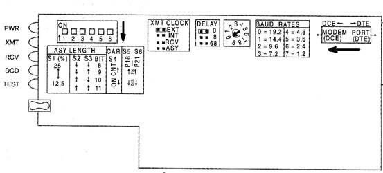 Асинхронная передача обеспечивается путем внутреннего преобразования асинх. à синх. В соответствии со стандартом V.22 bis. Различные асинхронные форматы выбираются переключателем.