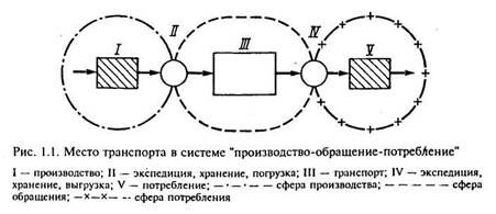 Экономическая теория, определяя место и роль транспорта в развитии современного общества, рассматривает его как всеоб­щее средство труда, как одно из общих условий производства. Перемещая средства труда и рабочих внутри предприятий, транс­порт осуществляет связи, порождаемые технологическим разде­лением труда. Эти функции выполняет внутрипроизводствен­ный транспорт. Перемещая различные виды продукции между производителями (поставщиками) и потребителями, транспорт осуществляет связи, порождаемые территориальным разделением труда (рис. 1.1). Эти функции выполняет транспорт сферы обра­щения, который в ходе исторического процесса общественного разделения труда выделился в самостоятельную сферу производ­ства. Перевозки в процессе обращения в современных условиях выполняет в основном транспорт общего пользования — желез­нодорожный, морской, речной, автомобильный, воздушный, а также специальный транспорт (трубопроводы, высоковольтные линии электропередачи и железнодорожные подъездные пути предприятий, связывающие их с сетью магистральных путей со­общения). Эти виды транспорта вместе с системой складов яв­ляются материальной основой процесса обращения.