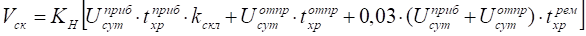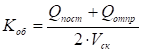 - отношение полусуммы поступления грузов и отгрузки за промежуток времени к вместимости склада.