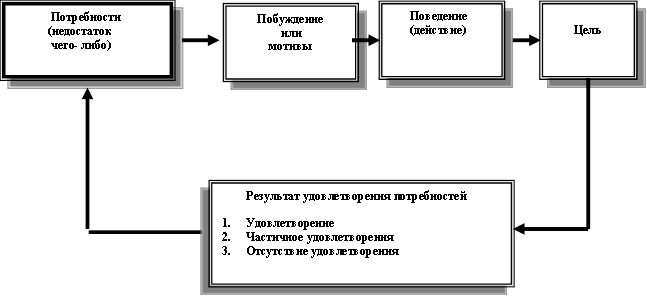 Оно является поведенческим проявлением потребности и сконцентрировано на достижение цели. Цели в этом смысле – это нечто, что осознается как средство удовлетворения потребностей. Когда человек достигает такой цели, его потребность оказывается удовлетворенной, частично удовлетворенной или неудовлетворенной (см. рис. 6.1.).