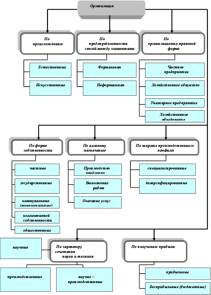 В реальной действительности существует достаточно значительное разнообразие организаций. При всем многообразии их можно классифицировать по ряду признаков, которые являются наиболее общими.