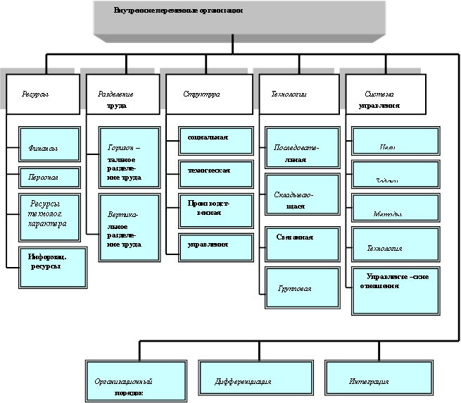 Внутренняя среда характеризуется также степенью дифференциации и интеграции производственных и трудовых процессов.
