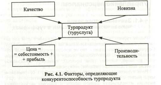 На рис. 4.1 показана взаимосвязь между турпродуктом (туруслугой) и некоторыми определяющими его факторами.