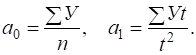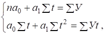 Для упрощения поиска параметров уравнения отсчет времени t можно производить так, чтобы сумма показателей времени изучаемого ряда динамики была равна нулю (
