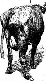 Этиология. Переломы крестцовой кости могут быть при паде­нии на крестец тяжелого предмета, при ушибах в область крестца движущимся транспортом, при падении животного в яму (крестцово-поясничной областью), а также когда без применения станка покрывают крупным быком-производителем слабых коров.
