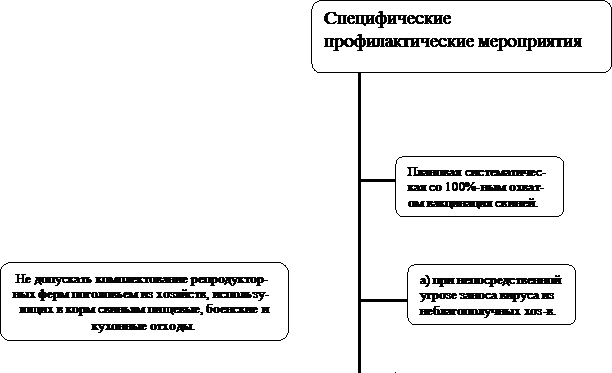 Большую опасность представляет перемещение клинически здоровых свиней их хозяйств, оздоровленных от этой инфекции. Свинину от таких животных следует реализовать на мясные изделия, подвергающиеся по технологии высокой термической обработке. В зоне реализации такой свинины все кухонные отходы подвергаются термической обработке.