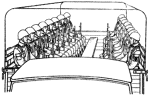 | Рис. 41 Размещение личного состава в кузове автомобиля: а — на продольных сидениях; б — на поперечных сидениях |