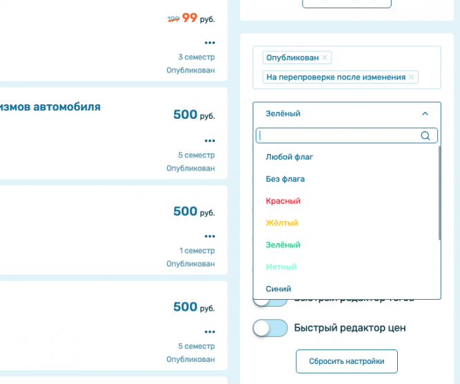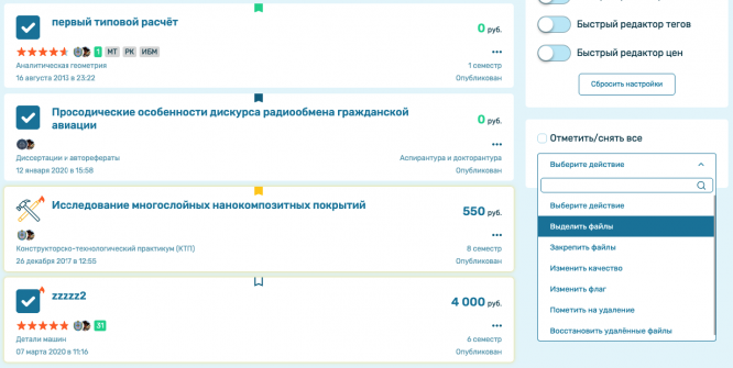 Добавили функции действия на несколько файлов. Теперь одновременно можно выделять, закреплять удалять и восстанавливать несколько учебных материалов, а также менять качество и флаг учебных материалов;