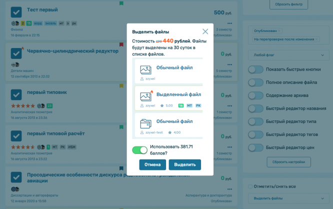 А ещё при выделении и закреплении более 5 файлов теперь действует скидка!