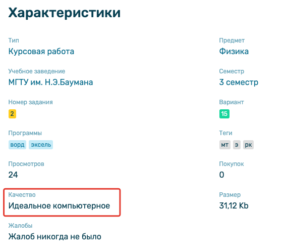 Добавили показ качества файлов на страницу описания файла. Обратите внимание, что качество показывается только в том случае, если оно указано;