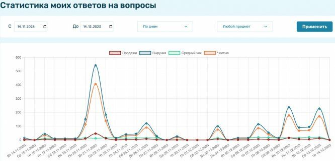 Теперь можно контролировать каждую продажу ответа на вопрос, смотреть распределение по предметам, по датам и даже смотреть статистику одного вопроса.
