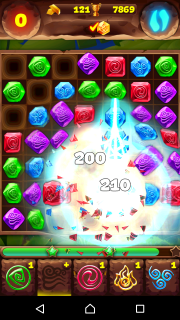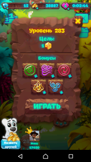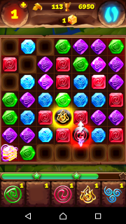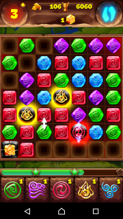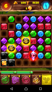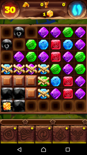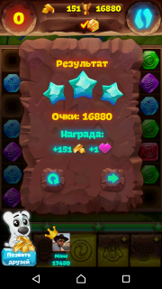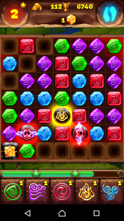 В конце всё совсем просто, так как нужно открыть нужную нам фишку и уничтожить её с помощью одного из тотемов. Расскажу ещё, что иногда может повести. Шанс маленький, но мне один раз повезло. Я получил в самом начале уровня возможность создать бонус воды (напомню, что он бьёт в случайные места). Далее я его применил и попал строго в жёлтую фишку. Затем я сделал пару ходов, чтобы получить тотем воды и применил его на нужном самоцвете. Вот так за 3-4 хода прошёл этот уровень один раз.