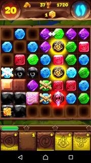 Теперь как Вы можете заметить - всё довольно просто. Чем больше мы освобождаемся от препятствий - тем больше у нас пространства для манёвров с целью получения бонусов в левой части уровня. Так же количество тотемов не может не радовать, если посмотреть на скриншот, но я рекомендую что-нибудь мощное припасти для жёлтого самоцвета.