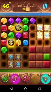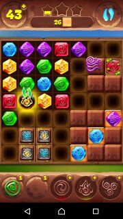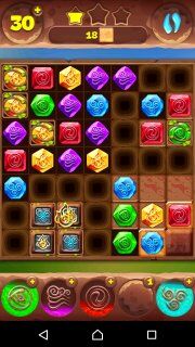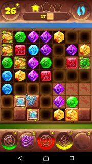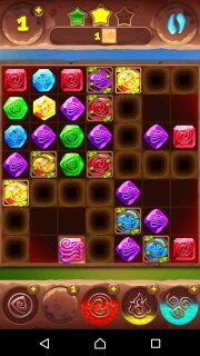 Всем привет! Я рад Вас приветствовать на своём сайте! Сейчас я расскажу, как мне удалось пройти на три звезды 558-й уровень в планете самоцветов (игра для мобильных телефонов и смартфонов). Сделать это не так уж и сложно, если знать кое какие особенности. Итак, нам нужно за 55 ходов разбить 26 клеток. Теперь взглянем на уровень и увидим, что он разбит на 4 части пустыми клетками, а в качестве соединений не используются телепорты. Получается, что добавить фишек в эти части можно только через уголки. Также в этих сегментах большое количество преград в виде пирамидок из обычных препятствий: тотемные камни (для тотемов огня и воздуха), растения, цветные и обычные боксы. Начинаем с обычных ходов и ждём первых тотемов. Рекомендую использовать тотем воды сначала максимально эффективно, чтобы разбить как можно больше коробочек в правой нижней части. Затем используем тотем огня, как это показано на изображении выше...
