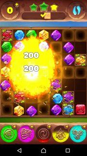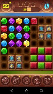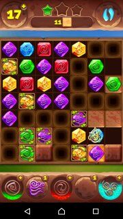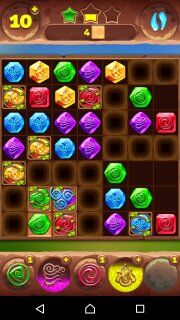 Приходится и дальше в основном играть в левой верхней части уровня, а в остальные сегменты изредка бить с помощью тотемов. В общем далее у нас на очереди тотем воздуха, который хорошо бы применить, как это показано на картинке. В принципе можно и по другому - это не так принципиально, главное, чтобы за одно применение минимум два воздушных камня уничтожались. Затем стараемся как-то воздействовать на открытый сегмент с помощью других тотемов и снова ждём тотемы огня и воздуха...