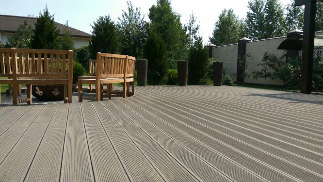 Композитные террасы пользуются все большей популярностью среди застройщиков и потихоньку вытесняют натуральное дерево. Террасы из досок ДПК устойчивы к неблагоприятным погодным условиям, не имеют сучков и в то же время могут выглядеть практически идентично натуральному дереву. Их относительно легко собрать, а их долговечность и эстетику можно сравнить с сибирской лиственницей. Однако композитных досках со временем могут появиться пятна, т.к. они крайне не устойчивы к очень высоким температурам и горячему маслу. Но в целом, композитная доска на террасе - решение, которое обязательно стоит рассмотреть!