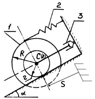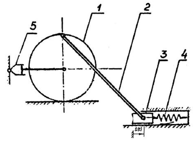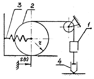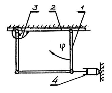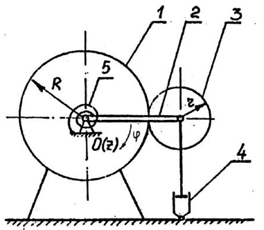 соответствующего положению ф=0, где ф(t) - угол поворота кривошипа 1, отсчитываемый от вертикали. Барабан 3 катится без проскальзывания. Массами блоков, незаданных в условии, можно пренебречь.